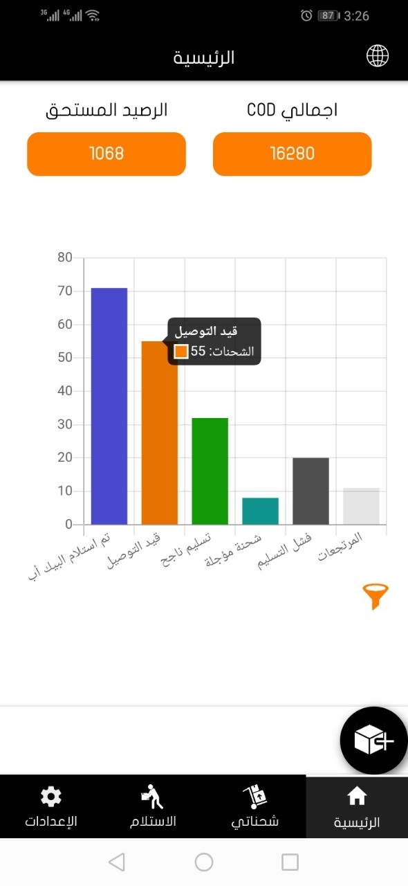احصائيات لتتبع عدد شحناتك وحالاتها