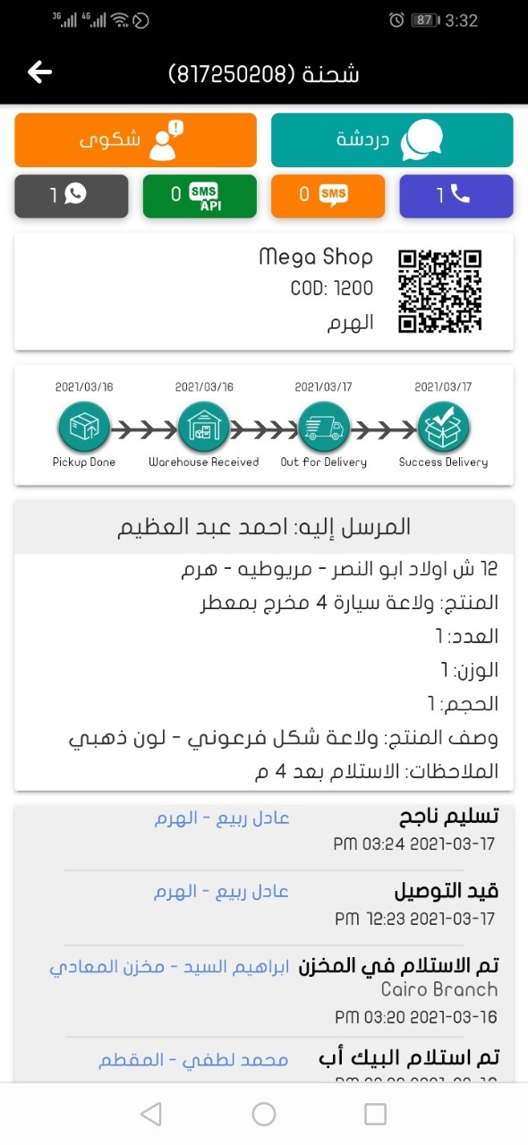 عرض كامل للتفاصيل الشحنة وحالتها وتسهيل التواصل