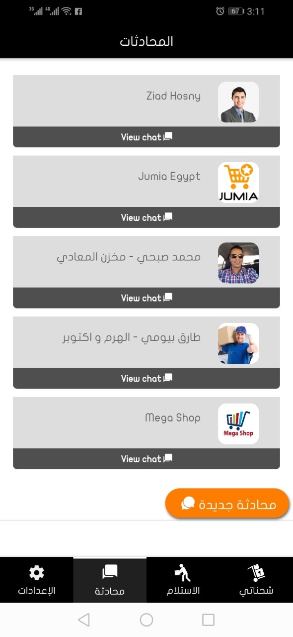 محادثات للتواصل مع الادارة والقائمين على نقل الشحنات